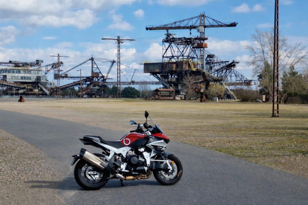Wie bei der Bimota Tesi H2 TERA sind sich da Welten begegnet. Der „Westen“ und der „Osten“ mit entsprechend Folgen für viele Menschen in ganz Europa und bei dem Motorrad der druckvolle Motor, die begeisternden Bremsen, das tolle Fahrwerk und natürlich die Achsschenkellenkung, die mir nach den zwei Tagen überhaupt nicht mehr auffiel. Der Wendekreis ist gar nicht so groß, wie man befürchten könnte. Man kann auch bei engen Straßen in einem Zug wenden. Das Motorrad wirkt und fährt wie aus einem Guss, alles ist da wo und wie es hingehört. Das Display ist gut ablesbar (auch im Dunklen) und nicht überfrachtet. Es zeigt genau das, was man braucht. Drehzahl und Geschwindigkeit und etwas kleiner das, was man sich einstellt, Tageskilometer oder Verbrauch. Das geht nach einer kurzen Einweisung sehr einfach und auch intuitiv.